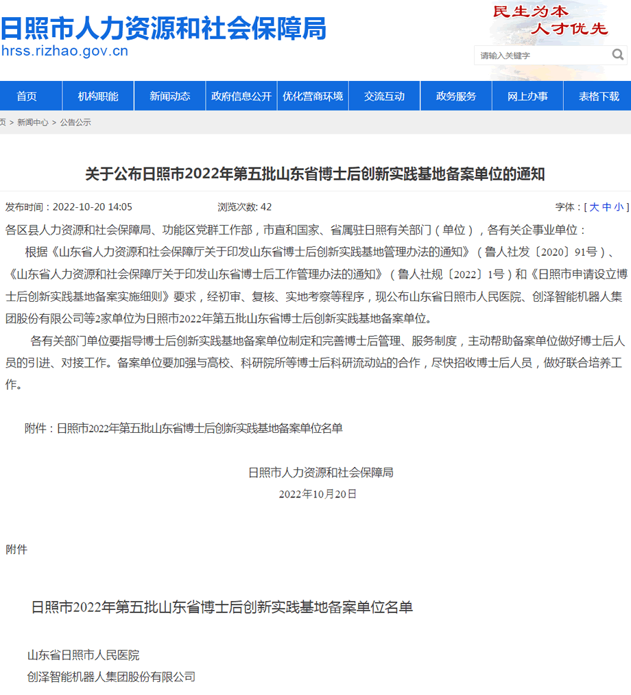 近日,日照市人力資源和社會保障局公示了2022年山東省博士后創(chuàng)新實踐基地擬備案單位的名單,創(chuàng)澤集團憑借優(yōu)秀的自主研發(fā)和創(chuàng)新能力,經(jīng)有關(guān)部門考察調(diào)研和專家評審,成功獲批山東省博士后創(chuàng)新實踐基地備案單位 。